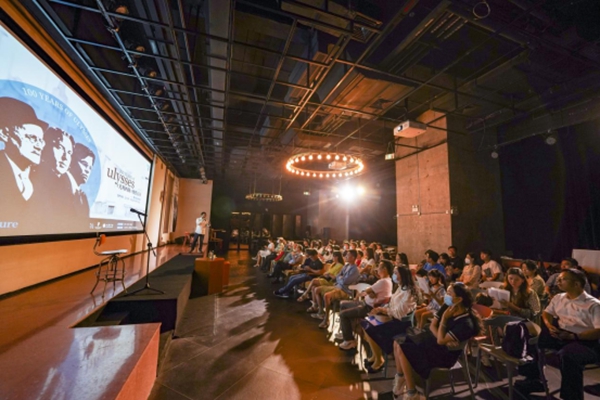 活動內(nèi)容豐富,既有愛爾蘭駐華大使館特別授權(quán)的喬伊斯生平及《尤利西斯》紀錄片首映、王爾德戲劇《理想丈夫》改編拍攝同名電影播放,又有青年詩人古箏彈奏《漁舟唱晚》、以東方古典詩意向西方經(jīng)典致意,還有十幾位讀者現(xiàn)場朗誦,并虔誠分享內(nèi)心的文學(xué)情結(jié)。