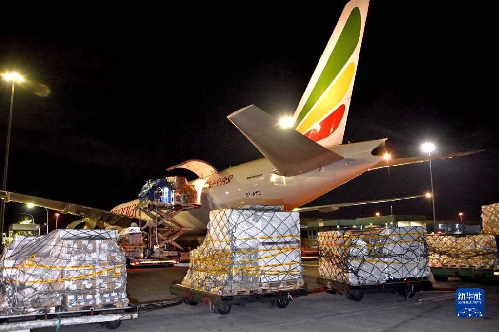2020年4月14日,中國(guó)援助的抗疫物資抵達(dá)南非約翰內(nèi)斯堡奧坦博國(guó)際機(jī)場(chǎng)。新華社發(fā)(中國(guó)駐南非大使館供圖)