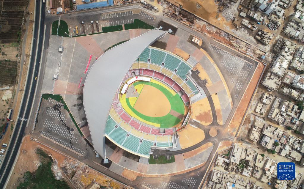 這是2018年7月18日在塞內(nèi)加爾首都達(dá)喀爾拍攝的中國(guó)援建的競(jìng)技摔跤場(chǎng)(無(wú)人機(jī)照片)。新華社記者呂帥攝