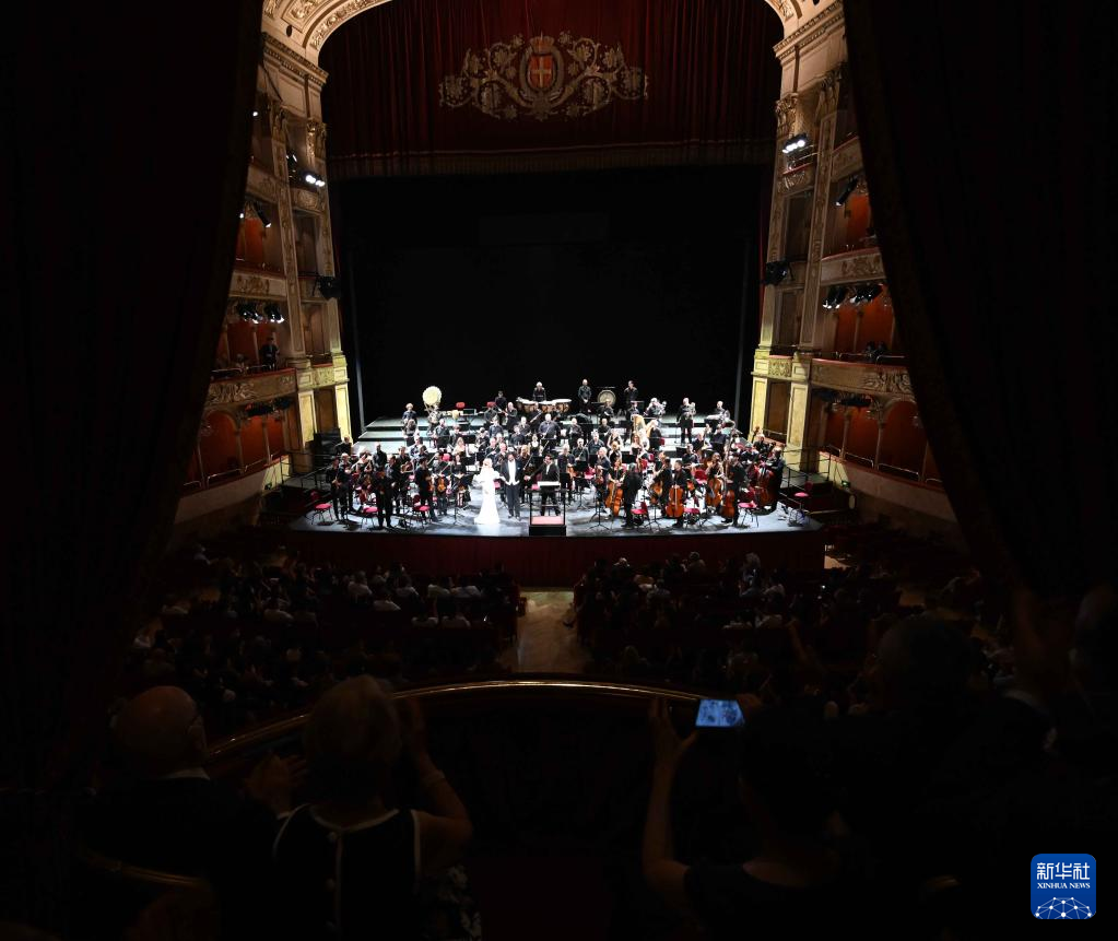 這是6月25日在意大利羅馬歌劇院拍攝的“中華風(fēng)韻”交響音樂(lè)會(huì)現(xiàn)場(chǎng)。新華社發(fā)(阿爾貝托·林格利亞攝)