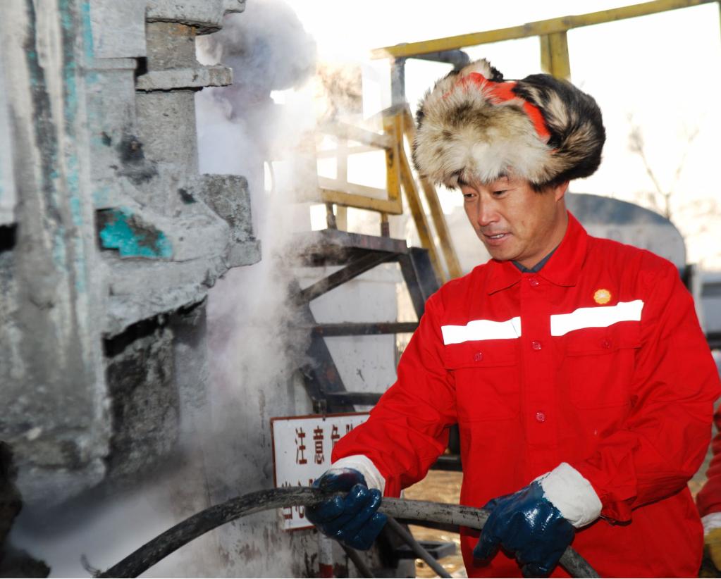 個子不高,一身石油工人服,一頂白色安全帽,說話有力,舉止干脆利落,這就是李新民。