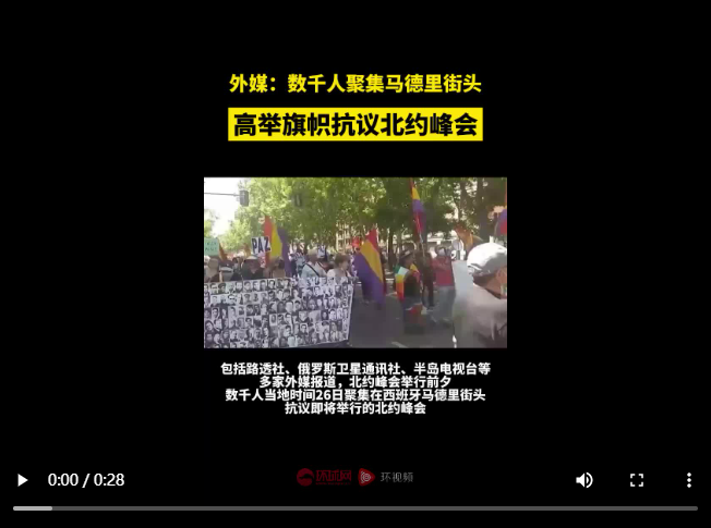 俄衛(wèi)星社:“不要北約”,關(guān)注馬德里(北約)峰會前夕數(shù)千名抗議者組成的聯(lián)盟