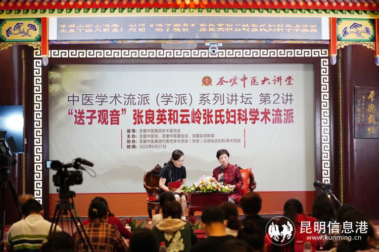昆明信息港訊 記者李紅鸞 6月27日,圣愛中醫(yī)大講堂中醫(yī)代表性學(xué)術(shù)流派(學(xué)派)系列講壇第2講在昆開講。云嶺張氏婦科學(xué)術(shù)流派創(chuàng)始人、國家級名中醫(yī)“送子觀音“張良英教授親臨現(xiàn)場作人生和學(xué)術(shù)思想交流,圣愛中醫(yī)大講堂堂主、圣愛中醫(yī)館創(chuàng)始人、云嶺張氏婦科學(xué)術(shù)流派傳承人劉瓊女士主持互動對話。