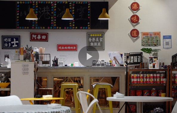 在四川大學(xué)江安校區(qū),有一間用老教室改建的川港冰室,它的創(chuàng)辦者是川大金融工程專業(yè)香港籍的大三學(xué)生戚文博。走進(jìn)川港冰室,溫暖的燈光映照在用餐區(qū)域,四周的墻壁上,貼滿了由九龍、中環(huán)、油麻地等香港地名、燈牌街景影像組成的照片墻。