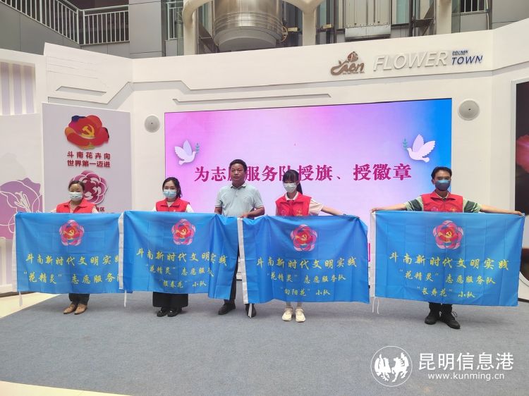 昆明信息港訊 記者段佳琪 6月29日,呈貢區(qū)斗南街道“向花都報道”新時代文明實踐志愿服務(wù)啟動儀式,在呈貢區(qū)新時代文明實踐斗南會客廳舉行。