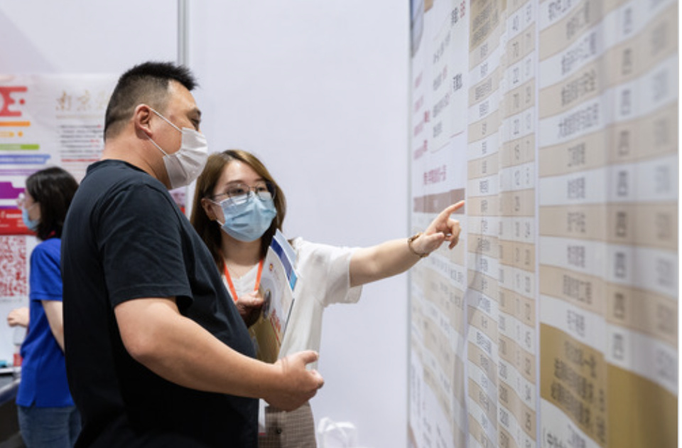 2020年7月25日,考生家長(zhǎng)在咨詢會(huì)上了解高校招生信息。 新華社發(fā)(蘇陽(yáng) 攝)