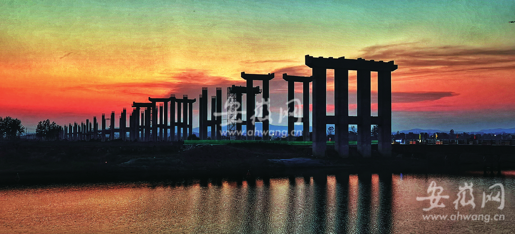 晚霞映照正在建設(shè)的廬江縣兆河特大橋。樂(lè)衛(wèi)星/攝