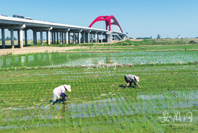徽州大道南延廬江段旁,農(nóng)民正在插秧。李博/攝