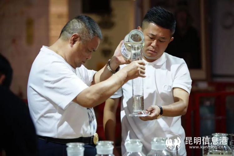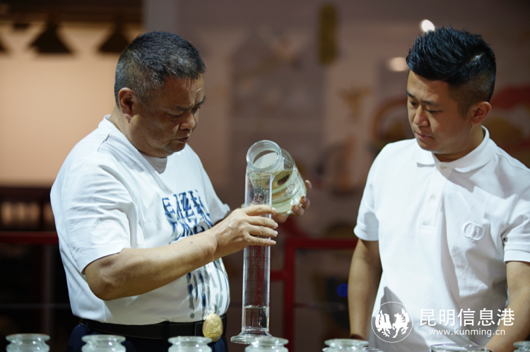 當(dāng)天下午,徐強(qiáng)攜愛徒王瑋現(xiàn)場(chǎng)為嘉賓演示國(guó)酒醬香勾調(diào)技藝,師徒二人通過七輪次酒的勾調(diào),一款醬香四溢的美酒呈現(xiàn)在眾人的面前,嘉賓逐一品鑒,贊嘆不已。