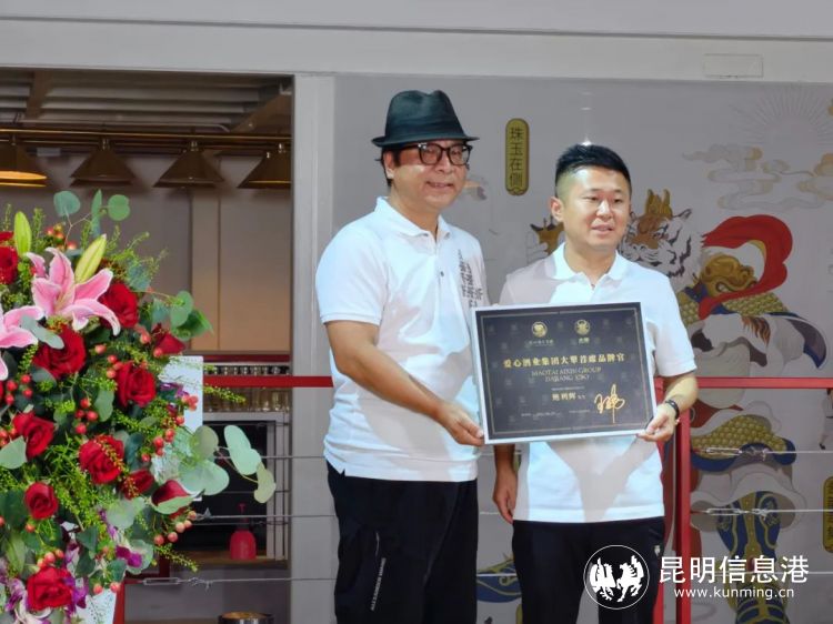 愛心酒業(yè)集團(tuán)董事長(zhǎng)王瑋(右)為大犟品牌創(chuàng)始人鮑利輝(左)頒發(fā)“大犟首席品牌官”聘書