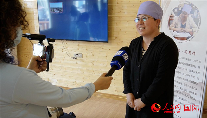 馬慧娟接受外國記者的采訪。人民網(wǎng)記者 何蒨攝