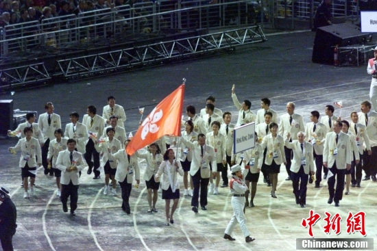 2000年9月15日,中國(guó)香港奧運(yùn)代表團(tuán)步入悉尼奧運(yùn)會(huì)開幕式。中新社發(fā) 李剛 攝