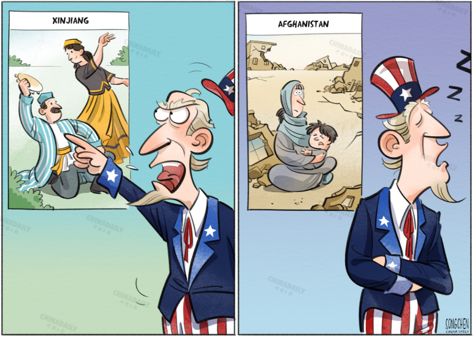 美國只關(guān)注新疆人權(quán),不關(guān)心其它國家,難道新疆人權(quán)更重要?(來源:中國日報(bào) 宋晨 英文《中國日報(bào)》2022年7月1日8版)