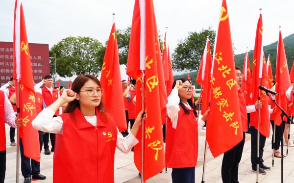 7月1日,為慶祝中國共產黨成立101周年,重慶市江北區(qū)在鐵山廣場舉行“弘揚偉大建黨精神、爭當時代先鋒模范”活動。(新華社發(fā))