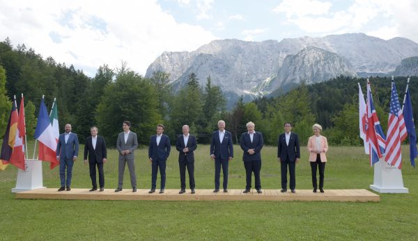 七國集團(G7)6月26日至28日在德國巴伐利亞州小鎮(zhèn)加米施-帕滕基興舉行年度峰會。峰會開幕時,當?shù)厮{天白云綠草如茵,與會領(lǐng)導(dǎo)人在拍攝集體照時,勾肩搭背,表情輕松。種種表現(xiàn)似乎是在向外界證明G7是團結(jié)的,并將聯(lián)手解決全球危機。