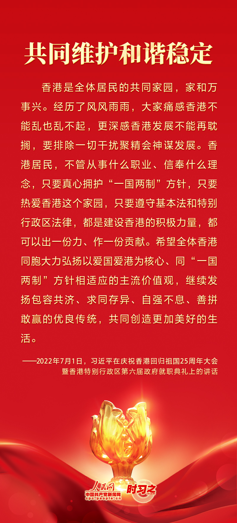 2022年7月1日上午,慶祝香港回歸祖國(guó)25周年大會(huì)暨香港特別行政區(qū)第六屆政府就職典禮在香港會(huì)展中心隆重舉行。中共中央總書(shū)記、國(guó)家主席、中央軍委主席習(xí)近平出席并發(fā)表重要講話(huà)。習(xí)近平對(duì)香港特別行政區(qū)新一屆政府和社會(huì)各界人士提出4點(diǎn)希望,為香港開(kāi)創(chuàng)新局面、實(shí)現(xiàn)新飛躍指明方向。