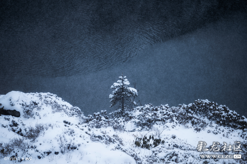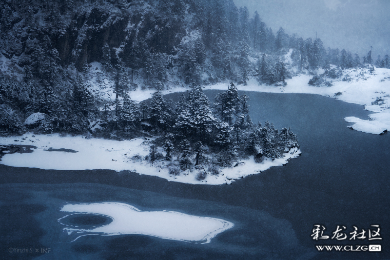 冰凍的湖泊與樹(shù)林,只剩下藍(lán)色和冷。