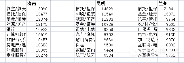 北京以14252元/月的平均招聘薪酬,位列第二。北京的情況與上海類似,二季度平均招聘薪酬環(huán)比上漲6.6%,生物醫(yī)藥、半導體、汽車等產(chǎn)業(yè)的發(fā)展帶動這類崗位薪酬上漲一成以上。昆明以8500元的平均招聘薪酬,位列本季度全國38個核心城市的第30名,其中,信托/擔保行業(yè)的平均招聘薪酬達到14829元/月。