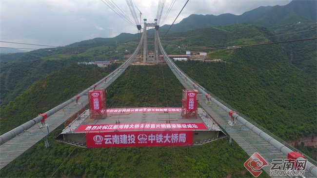 7月10日,由云南建設(shè)投資控股集團(tuán)有限公司投資建設(shè),中鐵大橋局八公司承建的永(仁)大(姚)高速江底河特大橋主橋首片鋼箱梁架設(shè)成功。