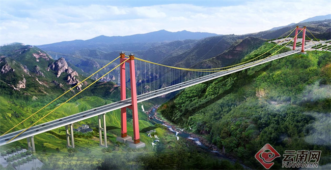 永大高速江底河特大橋位于楚雄州大姚縣和永仁縣交界的山嶺地帶,上跨江底河峽谷,大橋全長1668米,橋面距江底河峽谷谷底高達(dá)350米,是永大高速公路控制性工程,也是楚雄州境內(nèi)最大的一座在建公路懸索橋。