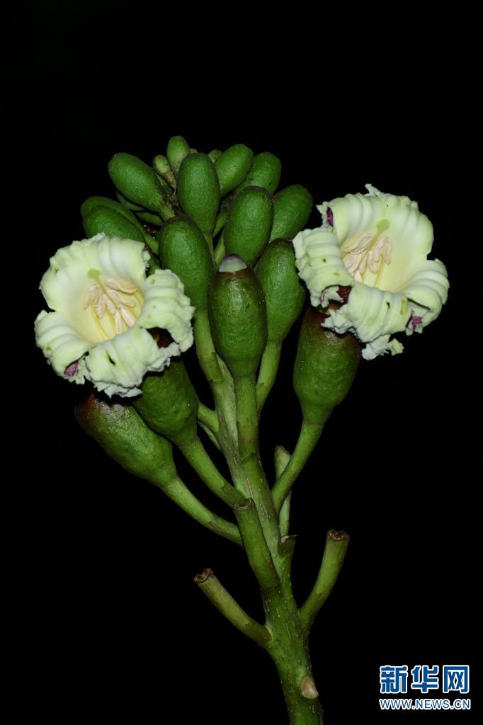 玉蕊。紅色的花朵如煙花般綻放于夜空中,次日清晨便會凋落(攝于6月21日)。新華網發(fā)(莫海波/攝)