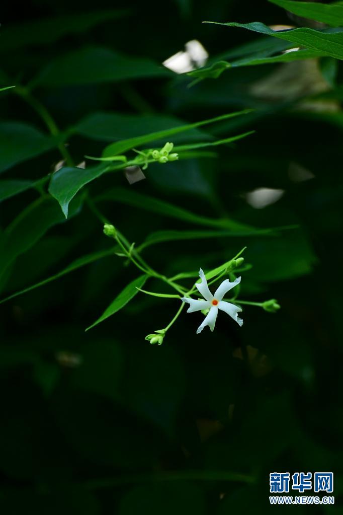 夜花。常于夜間開放,偶見有少量花朵在次日上午9點還未落,花朵潔白有香氣,小巧玲瓏。(資料圖)。新華網發(fā)(莫海波/攝)