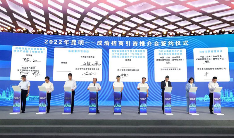 在昆明—成渝招商引資推介會(huì)上,簽約的35個(gè)項(xiàng)目中,除4個(gè)100億元及以上的項(xiàng)目外,還有4個(gè)50億元至100億元的項(xiàng)目,9個(gè)10億元至50億元的項(xiàng)目。新簽約項(xiàng)目中,既有生態(tài)涵養(yǎng)、特色農(nóng)旅“兩手抓”的特色項(xiàng)目,也有因地制宜的生態(tài)環(huán)保類項(xiàng)目。