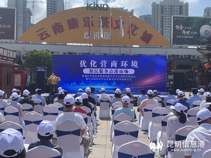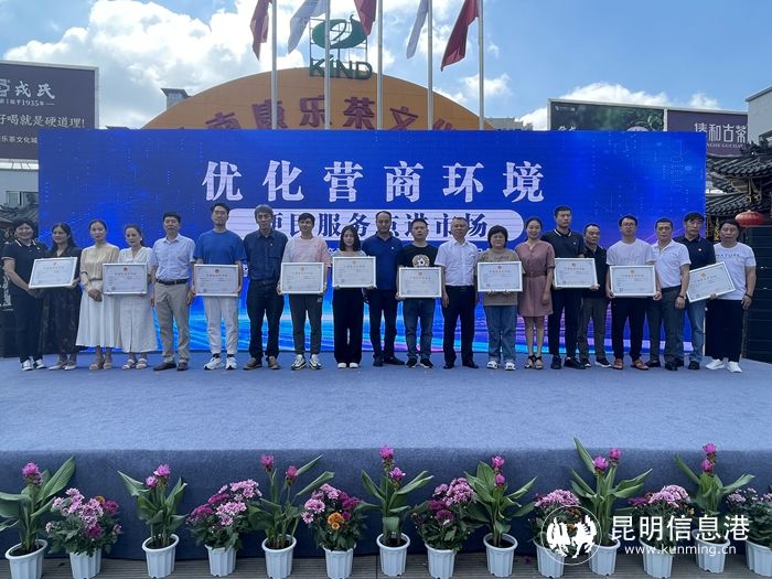 昆明信息港訊 記者龍泉積 7月13日,官渡區(qū)市場監(jiān)管局在康樂茶文化城舉行便民服務(wù)點暨行業(yè)綜合許可證改革試點市場授牌儀式。現(xiàn)場,官渡區(qū)市場監(jiān)督管理局向康樂茶文化城授予“官渡區(qū)市場監(jiān)督管理局康樂茶文化城便民服務(wù)點”和“行業(yè)綜合許可證改革試點市場”牌匾,并向市場內(nèi)10戶經(jīng)營戶代表頒發(fā)行業(yè)綜合許可證。