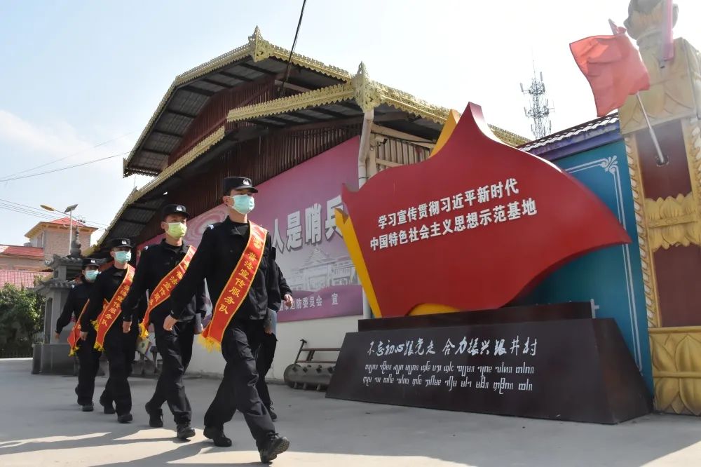 堅(jiān)持把深入學(xué)習(xí)宣傳貫徹習(xí)近平法治思想作為全民普法工作的首要任務(wù),將其貫穿到普法工作全過程、各方面。圖為瑞麗邊檢站民警在地處“一寨兩國”的德宏州瑞麗市姐相鄉(xiāng)銀井村普法。
