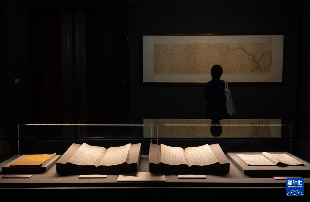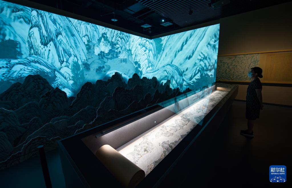 7月13日,觀眾在“蘭臺(tái)翰墨 家國(guó)春秋——明清歷史檔案展”上觀看展品《金沙江上下兩游山水全圖》。 新華社記者 陳鐘昊 攝