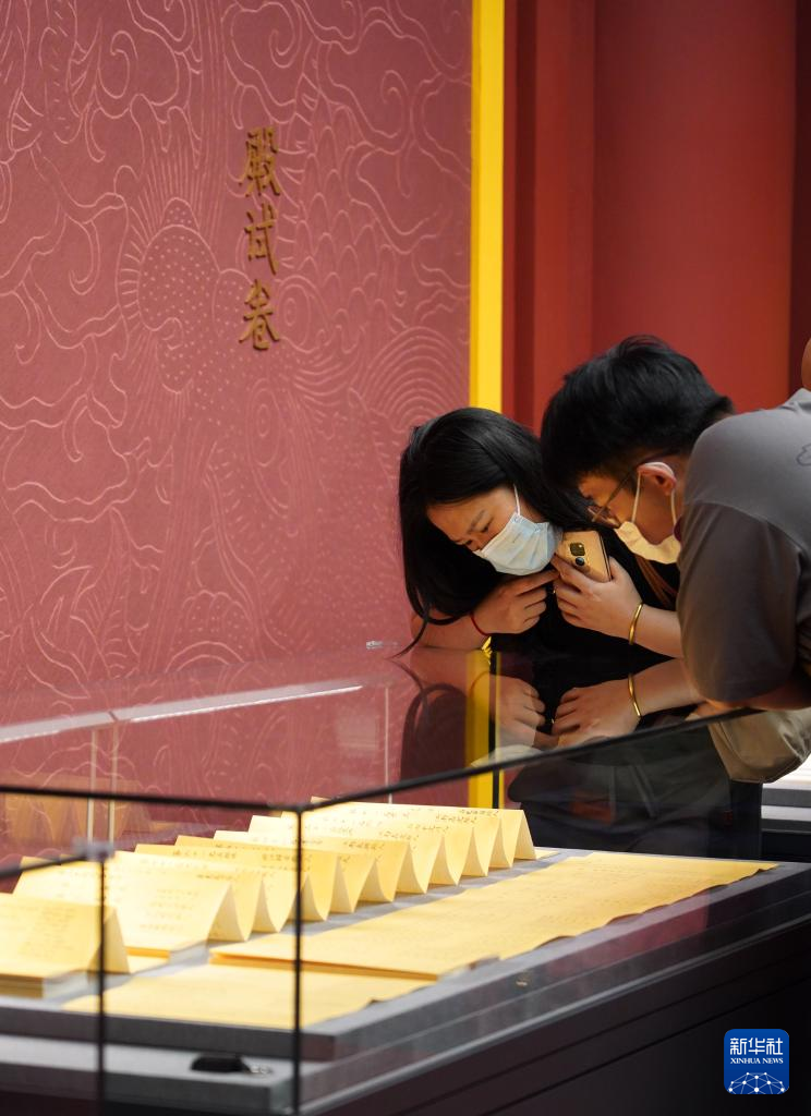 7月13日,觀眾在參觀“蘭臺(tái)翰墨 家國(guó)春秋——明清歷史檔案展”。 新華社記者 李夢(mèng)馨 攝