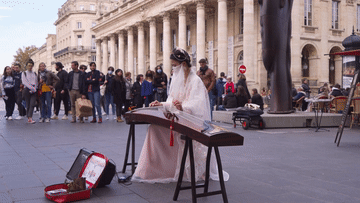 彭靜旋說,初次在法國街頭彈奏古箏時“還比較忐忑”,大多選擇《高山流水》《漁舟唱晚》等傳統(tǒng)曲目,但隨著漸入佳境,她的嘗試越來越多元,用“中國風”形式演繹了很多西方作品?!爱?shù)赜^眾反應都很積極,對我是很大的鼓勵?!彼f。