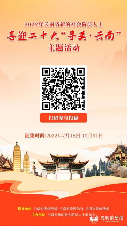 2022年云南省新的社會階層人士喜迎二十大“尋美·云南”主題活動由云南省委統(tǒng)戰(zhàn)部、云南省委網(wǎng)信辦、昆明市委統(tǒng)戰(zhàn)部指導(dǎo),云南省新的社會階層人士聯(lián)誼會主辦。