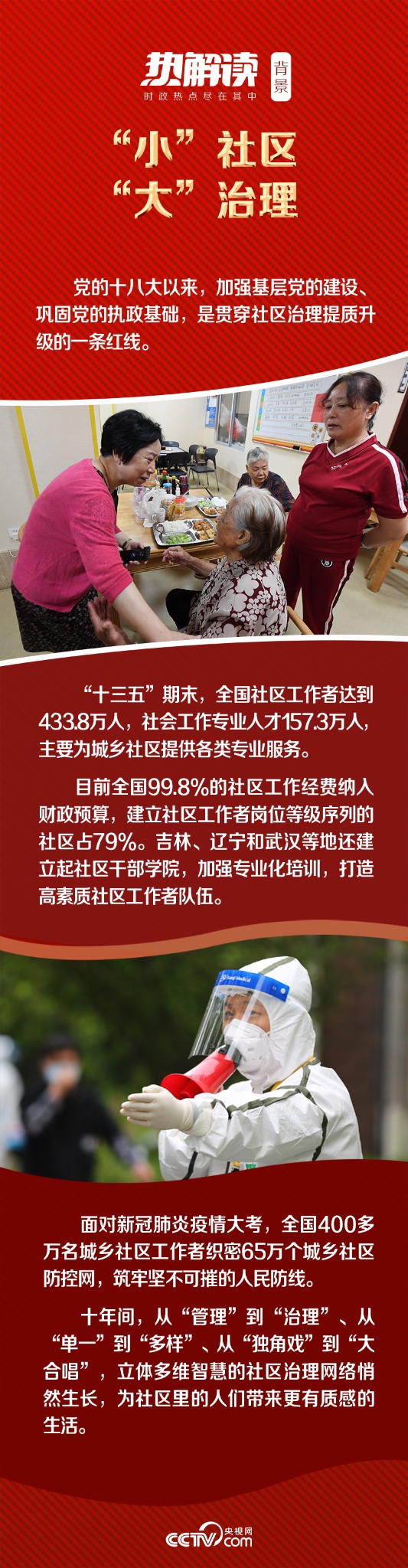 “黨中央高度重視社區(qū)工作,我們要改革創(chuàng)新基層治理,提高治理能力,更好服務(wù)于人民群眾?!绷?xí)近平總書記一次次深入社區(qū)進(jìn)行解剖麻雀式的調(diào)研。