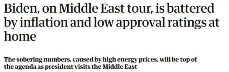 在面對高通脹率和低支持率雙重打擊的背景下,盡管拜登高調(diào)宣稱此訪旨在開啟美國與中東關系“新篇章”,但“找油”被認為是他最現(xiàn)實的目的。