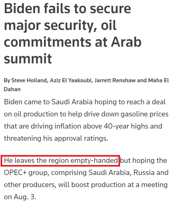 路透社:拜登的“找油”之旅空手而歸