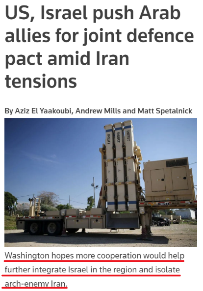 不靠譜的并非只是把阿拉伯國家和以色列硬捏到一起拼湊“中東版北約”,還有把伊朗樹為它們的“共同敵人”。
