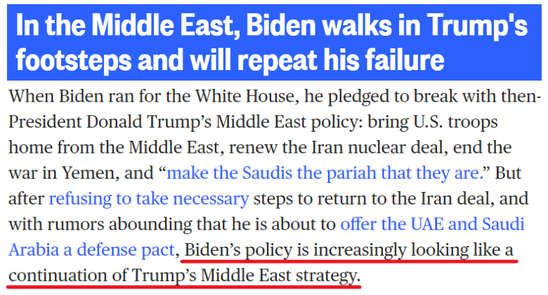 從拜登此行的第一站以色列開始,輿論就普遍注意到,那些曾被拜登摒棄或擱置的特朗普式中東政策似乎又回來了。