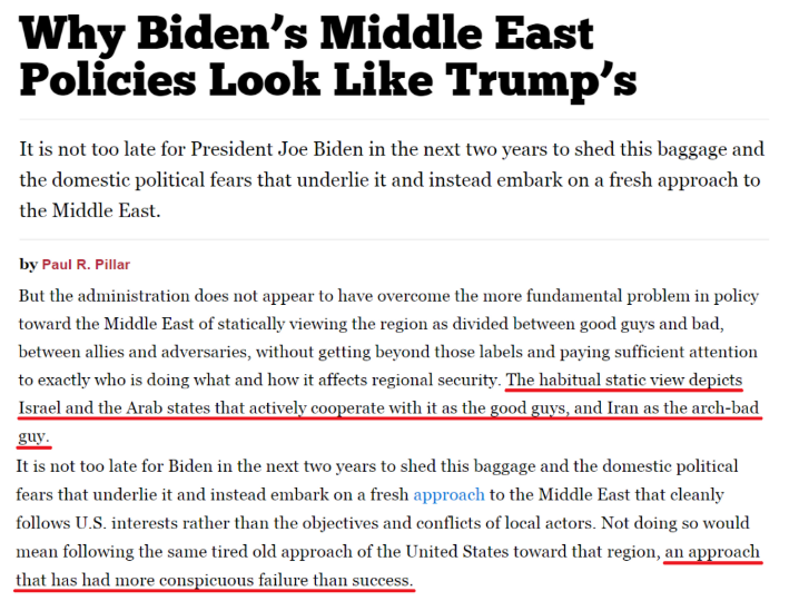 美國《國家利益》雜志發(fā)文批評說,拜登政府很大程度上延續(xù)了特朗普失敗的對伊朗“極限施壓”政策。這表明它未能克服美國中東政策中一個根本問題,即把中東國家簡單地劃分為“好人和壞人、盟友和對手”。