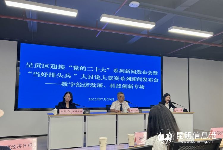 7月20日,呈貢區(qū)“迎接黨的二十大”系列新聞發(fā)布會(huì)暨“當(dāng)好排頭兵”大討論大競(jìng)賽專(zhuān)題發(fā)布會(huì)之?dāng)?shù)字經(jīng)濟(jì)發(fā)展、科技創(chuàng)新專(zhuān)場(chǎng)。