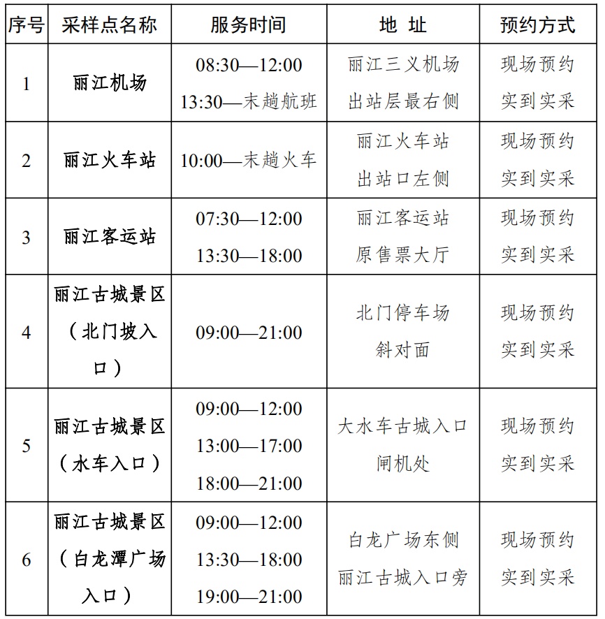 麗江市免費核酸采樣點信息
