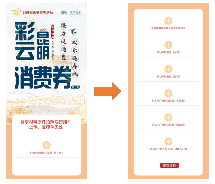 購(gòu)車消費(fèi)者通過承接本活動(dòng)的第三方機(jī)構(gòu)申報(bào)系統(tǒng)(云閃付App),在閱讀并同意“昆明購(gòu)車補(bǔ)貼線上”申領(lǐng)規(guī)則后,按要求清晰、完整、準(zhǔn)確填報(bào)相關(guān)信息和提交申報(bào)資料。
