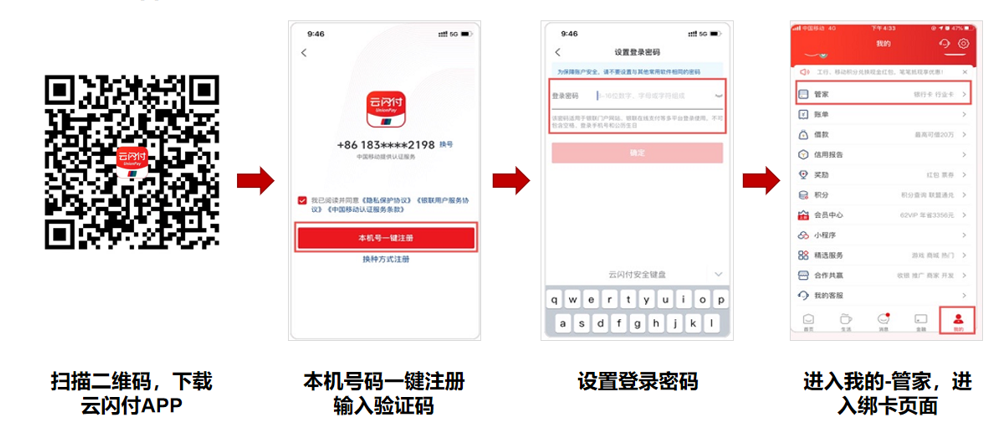 云閃付App下載及綁定銀行儲(chǔ)蓄卡流程(參照?qǐng)D例4~圖例5)。