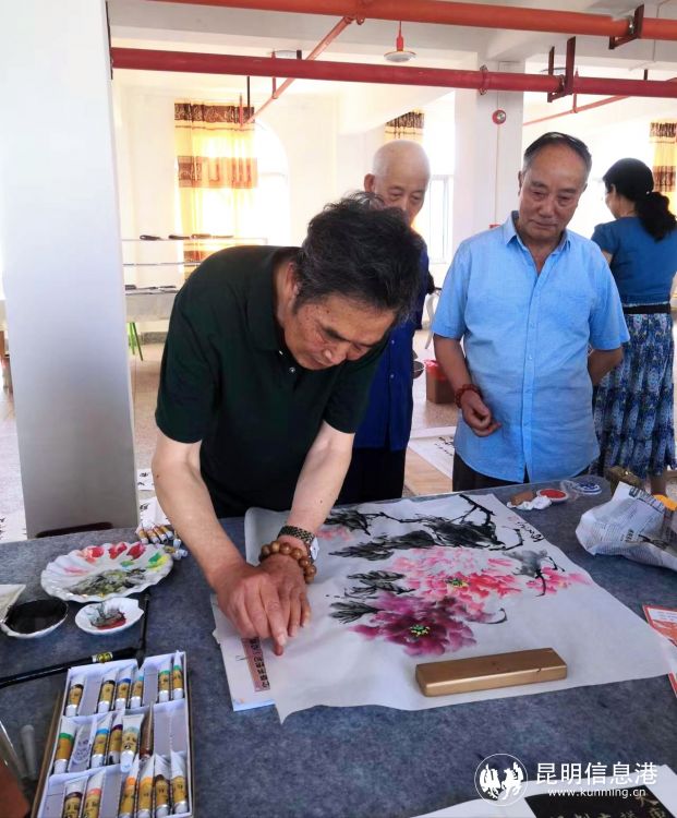 走進安寧重生老年公寓,只見健身老師正在帶領著老年人們做簡單的運動。而在公寓1-4樓的樓道、走廊和文化室,隨處可見掛著的一幅幅字畫,這些都是入住公寓的老年人提筆即興所作。