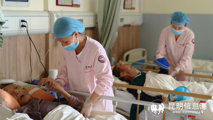 記者走進安寧市中醫(yī)醫(yī)院的敬老養(yǎng)老中心,走廊里明亮的燈光、工作人員整潔統(tǒng)一的醫(yī)護服、干凈的院區(qū)環(huán)境,讓人無法想像這里住著50余位失能老人,養(yǎng)老中心全部按照醫(yī)院規(guī)范化進行管理,很多家屬來探望老人時都感言,這里的護理比老人在家由家人護理好很多倍,而且如果老人臨時出現(xiàn)意外狀況,院方馬上可以進行專業(yè)的診療,放下了家屬心中的一塊大石頭。