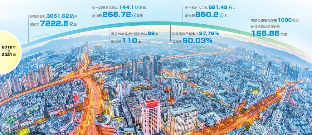 加快構(gòu)建“老城煥新、新城崛起、新區(qū)發(fā)力、城鄉(xiāng)融合”的空間格局,城市框架全面拉開。2012年至2021年,主城區(qū)建成區(qū)面積從397平方公里擴大到459平方公里,全市常住人口從681.49萬人增長到850.2萬人。