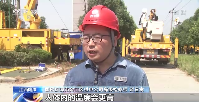 國網(wǎng)鷹潭市余江區(qū)供電公司高級檢修師 饒日嵩:絕緣服的話是在外面再套了一層這個屏蔽的,所以我們的實際上人體內(nèi)的溫度會更高。對我們的作業(yè)人員來講,是一個很大的挑戰(zhàn)。