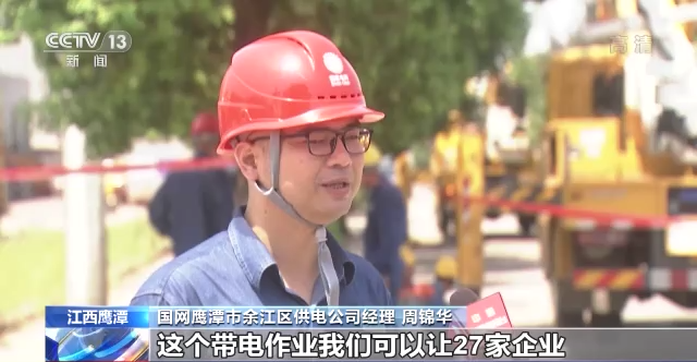 國網(wǎng)鷹潭市余江區(qū)供電公司經(jīng)理 周錦華:這個帶電作業(yè)可以讓27家企業(yè)和1240余戶居民用戶不停電。
