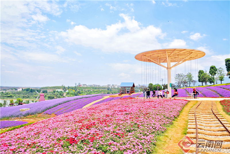 盛開的花田間,掩映著一條米軌,用以紀(jì)念滇越鐵路為東風(fēng)農(nóng)場帶來的法國葡萄,米軌之上鐫刻著用自世界上不同語言表達(dá)的“我愛你”,成為這片大地對游人的告白。