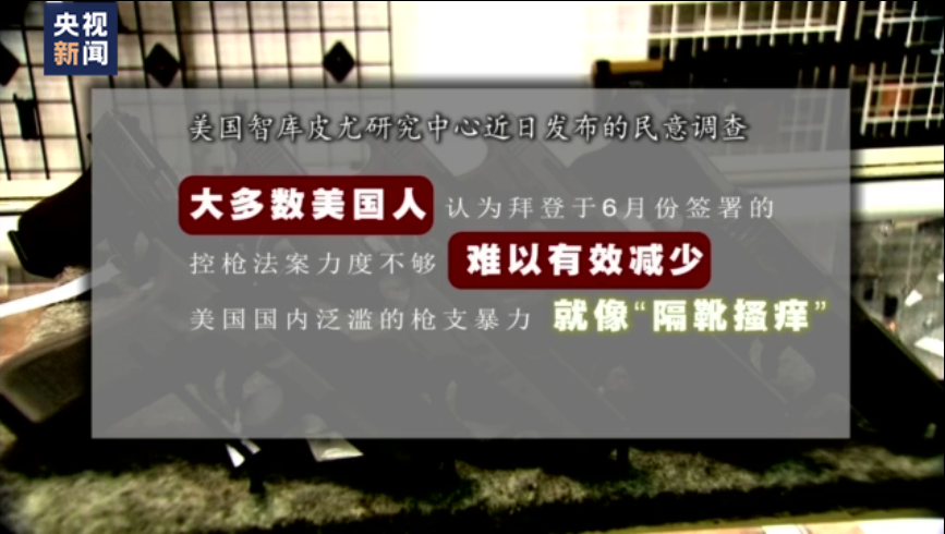 美國(guó)國(guó)會(huì)在6月份通過(guò)了一項(xiàng)槍支管制法案,加強(qiáng)對(duì)最低齡購(gòu)槍者的背景審查。雖然這是美國(guó)近30年首次就控槍立法,但外界普遍認(rèn)為這是“隔靴搔癢”,無(wú)法從根本上解決美國(guó)槍支暴力問(wèn)題。